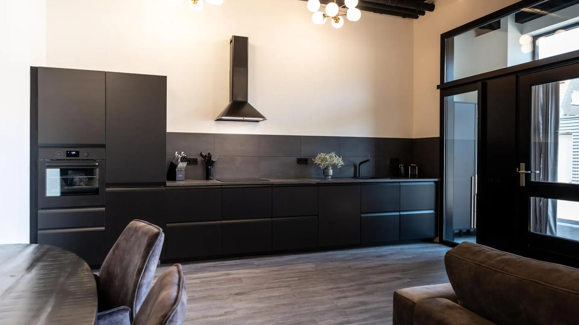 Het appartement is volledig uitgerust met een oven en een vaatwasser in een keuken.