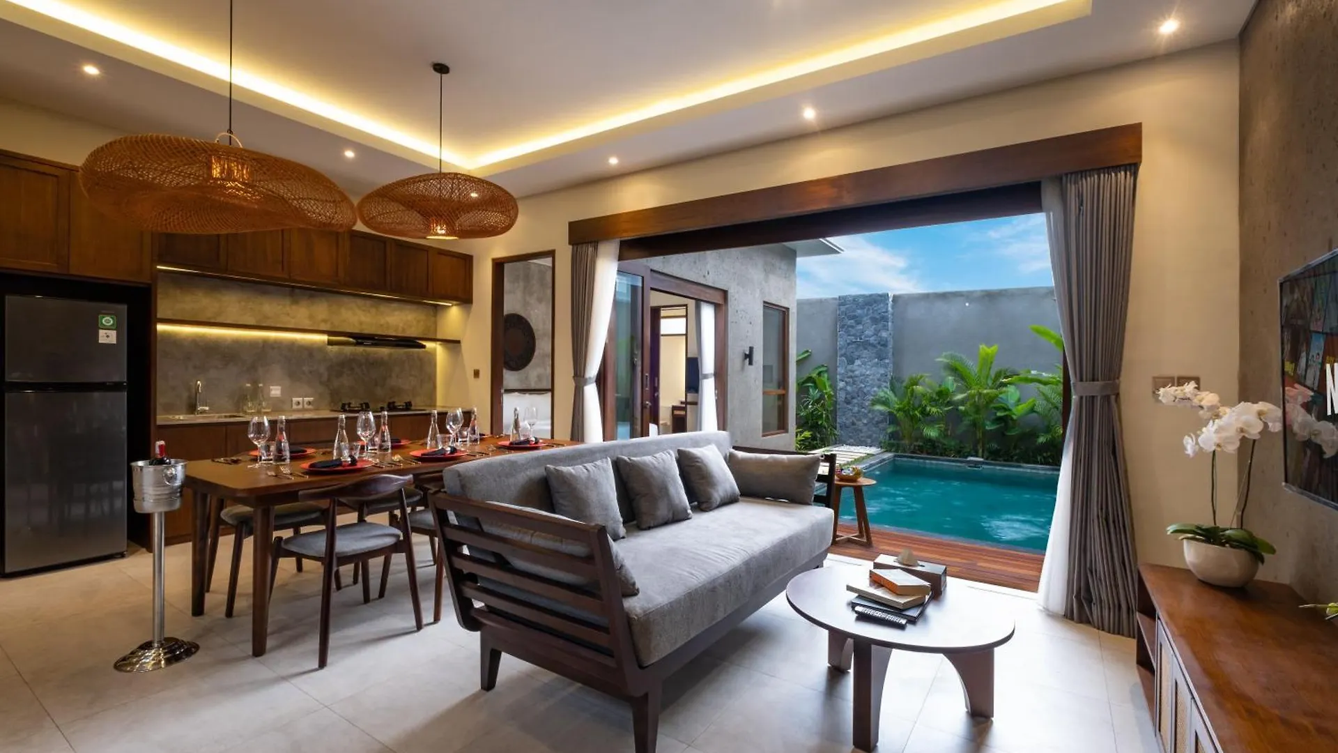 The contemporary-style Taman Dharmawangsa Suites Nusa Dua villa is located in the Kampial district, 3.2 km from the Pandawa Beach and features a private swimming pool as well as views of the garden. This villa awaits guests on a terrace with a swimming pool and a sitting area.